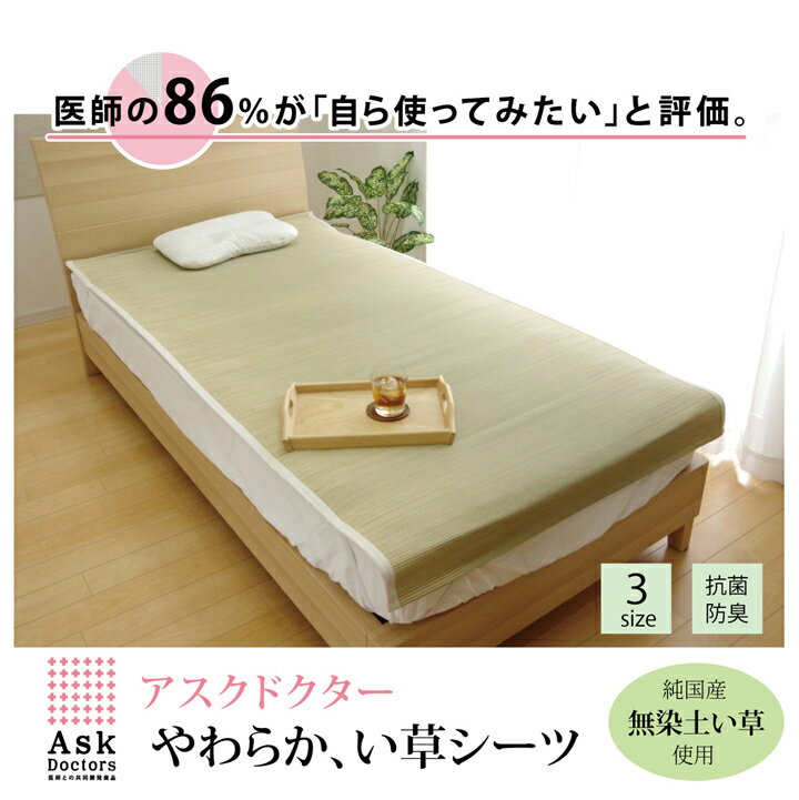 同商品の他サイズ ・ベビーサイズ 約70×120cm ・シングルサイズ 約100×200cm ・セミダブルサイズ 約120×200cm医師との共同開発 い草寝具 『アスク 汗取P』 約100×200 シングルサイズ サイズ 約100×200cm シングルサイズ 組成 生地:い草(九州産) ヘリ:綿85% 麻15% 裏ゴムバンド付き 原産国 日本製(純国産) 商品説明 ■医師60名の意見・アイデアから快適な睡眠をサポートする「い草寝具シリーズ」を共同開発しました。