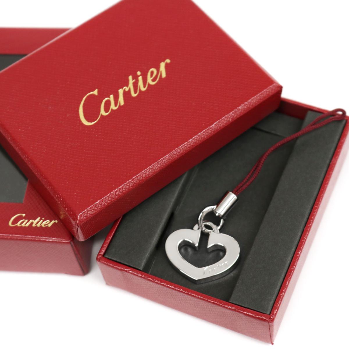 新品同様◆Cartier カルティエ Cハート 携帯ストラップ◆ シルバーカラー×ボルドー/キーホルダー/レディース/服飾小物/ブランド雑貨【中古】