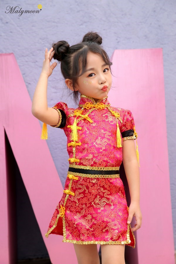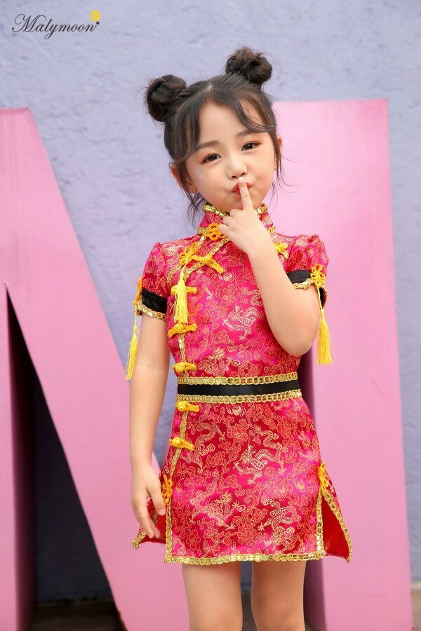 Malymoon kids チャイナドレス レッド 110cm [マリームーン コスプレ チャイナドレス コスチューム 子供用 キッズ チャイナ服 衣装 仮装 イベント ハロウィン]【_408795】