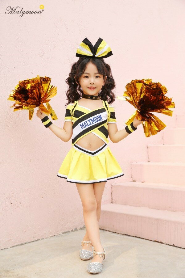 Malymoon kids リボンチアガール イエロー 120cm [マリームーン コスプレ チアガール コスチューム 子供用 キッズ チガリーダー 応援 衣装 仮装 イベント ハロウィン]【_408740】