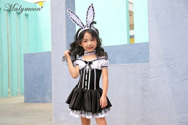 Malymoon kids オフショルバニー ブラック 120cm [マリームーン コスプレ バニー コスチューム 子供用 キッズ バニーガール うさぎ 衣装 仮装 イベント ハロウィン]【_408658】