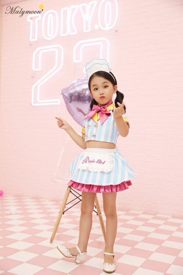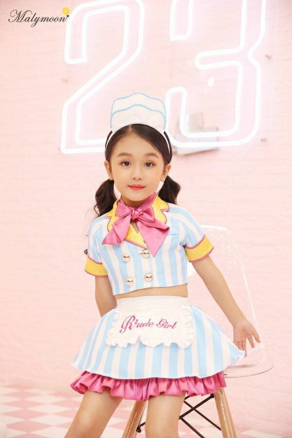 Malymoon kids ストライプウェイトレス ブルー 110cm [マリームーン コスプレ ウエイトレス コスチューム ウェイトレス 子供用 キッズ メイド 衣装 仮装 イベント ハロウィン]【_409013】