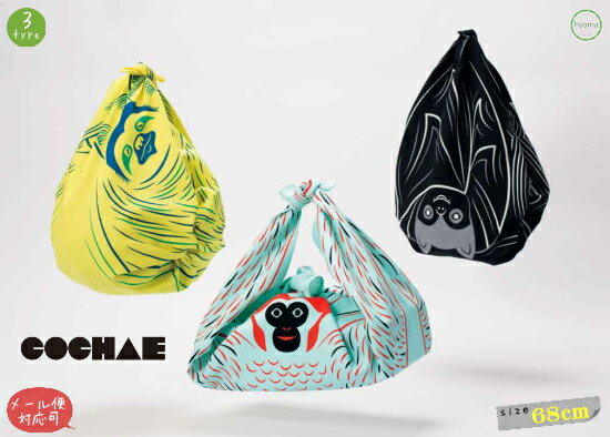 【メール便送料無料】風呂敷 70cm 二巾 バッグ COCHAE むす美(ふろしき) (68ぶらさがりコチャエ サルブルー ナマケモノキイロ コウモリクロ )