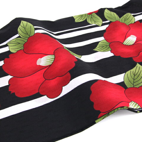 新作浴衣3点セット花火大会・夏祭り・盆踊りなどの今年の夏の楽しいイベントをお気に入りの新しい浴衣で楽しみませんか?黒地に白縞と赤、白の椿が描かれたお柄は上品でレトロな印象しっとりした落ち着きのある大人の女性に見せてくれます。